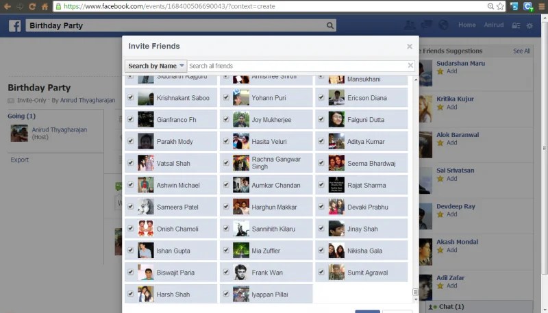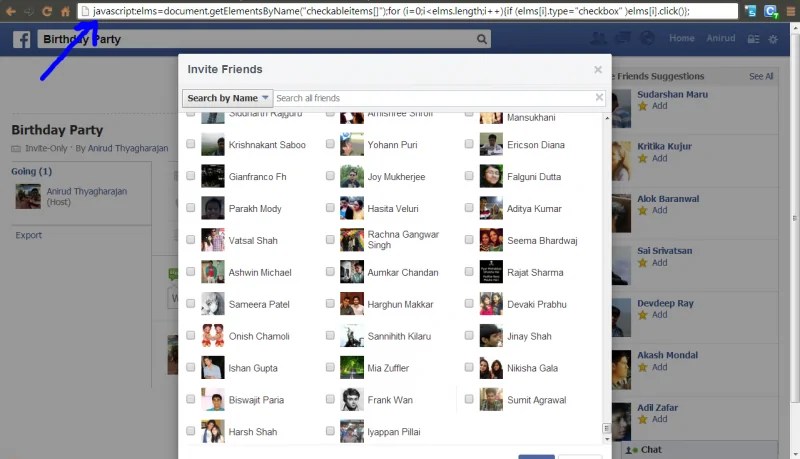 Generally speaking, all important events and happenings in the real world can’t be communicated through word of mouth, and hence we need publicity and marketing through Facebook, the top rated social networking site. Now, assuming you have just about a few hundred friends on Facebook, you could invite people to join your event ! Sadly though, Facebook doesn’t offer a way to invite more than one friend at a time, i.e, per click. So, developers came up with a JavaScript code which could actually check all the check boxes and hence mass invite all your friends ! So here’s the step by step way to do it.