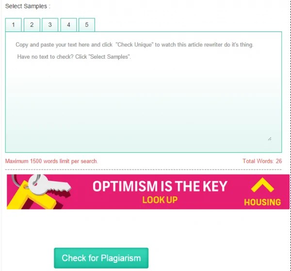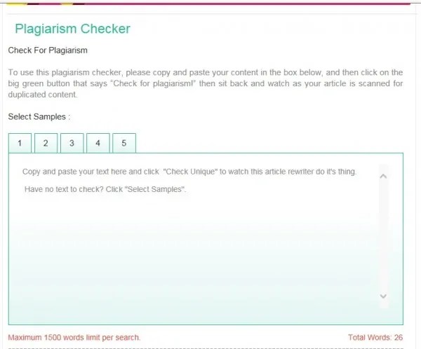 Step 1 – You need to Copy and Paste the content which has to be checked for plagiarism, into a text box which looks as shown in the image below.
